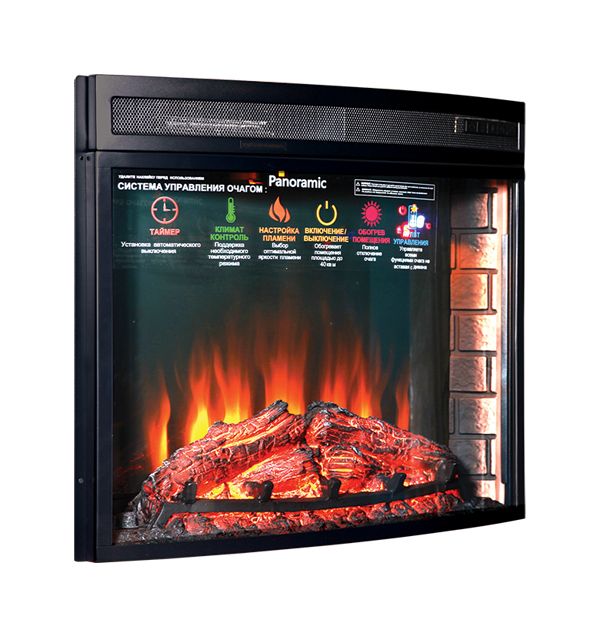 Достойный эффект пламени. Муляж дров, выполненный по слепку с настоящих, расположен за панорамным стеклом. Регулировка яркости пламени и дров (5 режимов), также «АВТО-режим» - возгорание и затухание в автоматическом режиме. Новый кварцевый обогреватель с функцией «климат-контроль» спрятан в верхней части очага, обеспечивает обогрев в холодную погоду, и, главное – не сжигает кислород в помещении.
