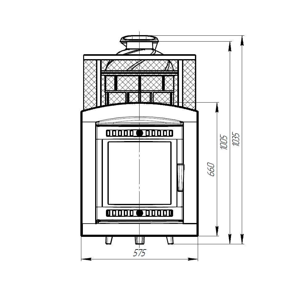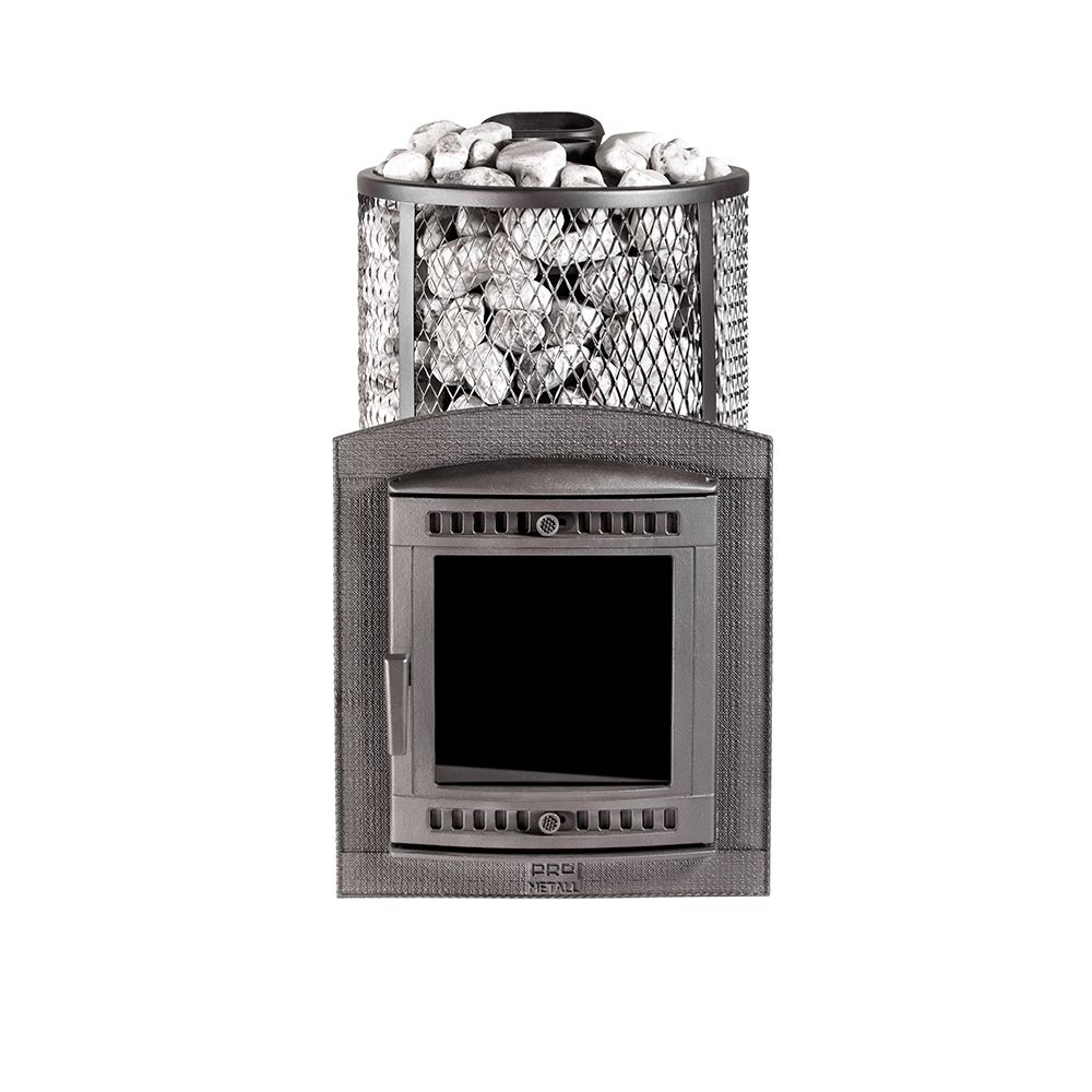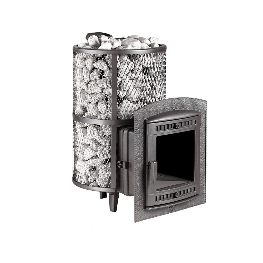 Модель с увеличенной каменкой и повышенной производительностью. Кожух печи изготовлен в виде сетки из нержавеющей стали и полностью заполняется природными камнями, обеспечивая высокую динамику нагрева парильного помещения.
