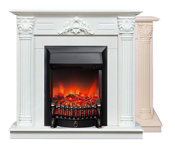 Компактный электрокамин RealFlame Stefania WT айвори с Fobos s Lux BL по бокам украшают объемные колонны, которые прекрасно сочетаются с центральным растительным декором. Электрический очаг FOBOS LUX предназначен для встраивания в обрамления стандартного размера. Украшение очага - муляж сгоревших дров, которые поддерживает фигурная металлическая решетка. Нагреватель с поддувом спрятан в козырьке очага и обеспечивает комфортный обогрев в холодную погоду. Клавиши включения позволяют регулировать обогрев 2 режима - 1500Вт/750Вт Данная модель имеет звуковой эффект потрескивания дров. Очаг может работать отдельно в декоративном режиме, без обогрева, при этом потребление электроэнергии составляет всего 80 Вт как две свечеобразные лампы E14 мощностью 40W. Камин - это обязательный предмет интерьера для вашей гостиной, кухни, спальни или прихожей его предназначением является украшение и декорация вашего дома или офисного помещения.