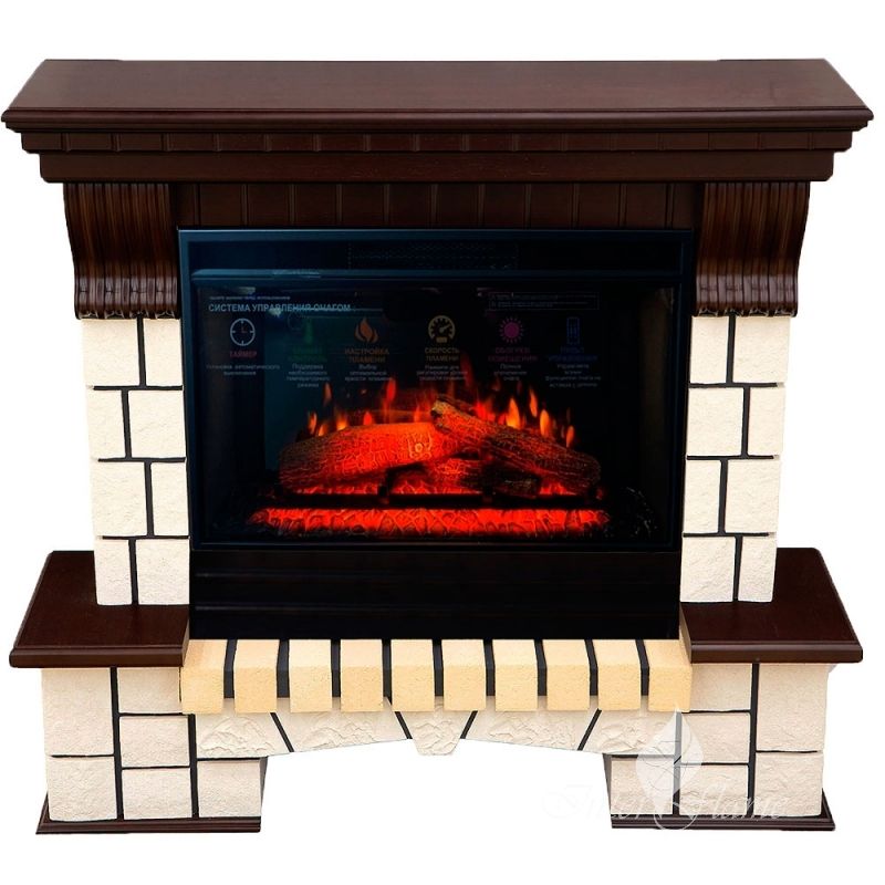 Электрический камин Экстер (Exter) давно зарекомендовавшая себя модель, в сборе с современным очагом, последнего поколения Foton 26, Очаг обладает потрясающим эффектом пламени и муляжом дров расположенных за панорамным фронтальным стеклом. С помощью регулятора яркости огня можно задать желаемую яркость пламени (3 уровня регулировки). Обогреватель, спрятан в верхней части очага и обеспечивает обогрев в холодную погоду. Обогреватель является самым современным способом обогрева и обладает рядом преимуществ, такими как: практически не сжигает кислород, высокая скорость нагрева, отсутствие запаха и экономия электричества. Цена может быть выше для цветов белый, бежевый, бежевый с патиной.